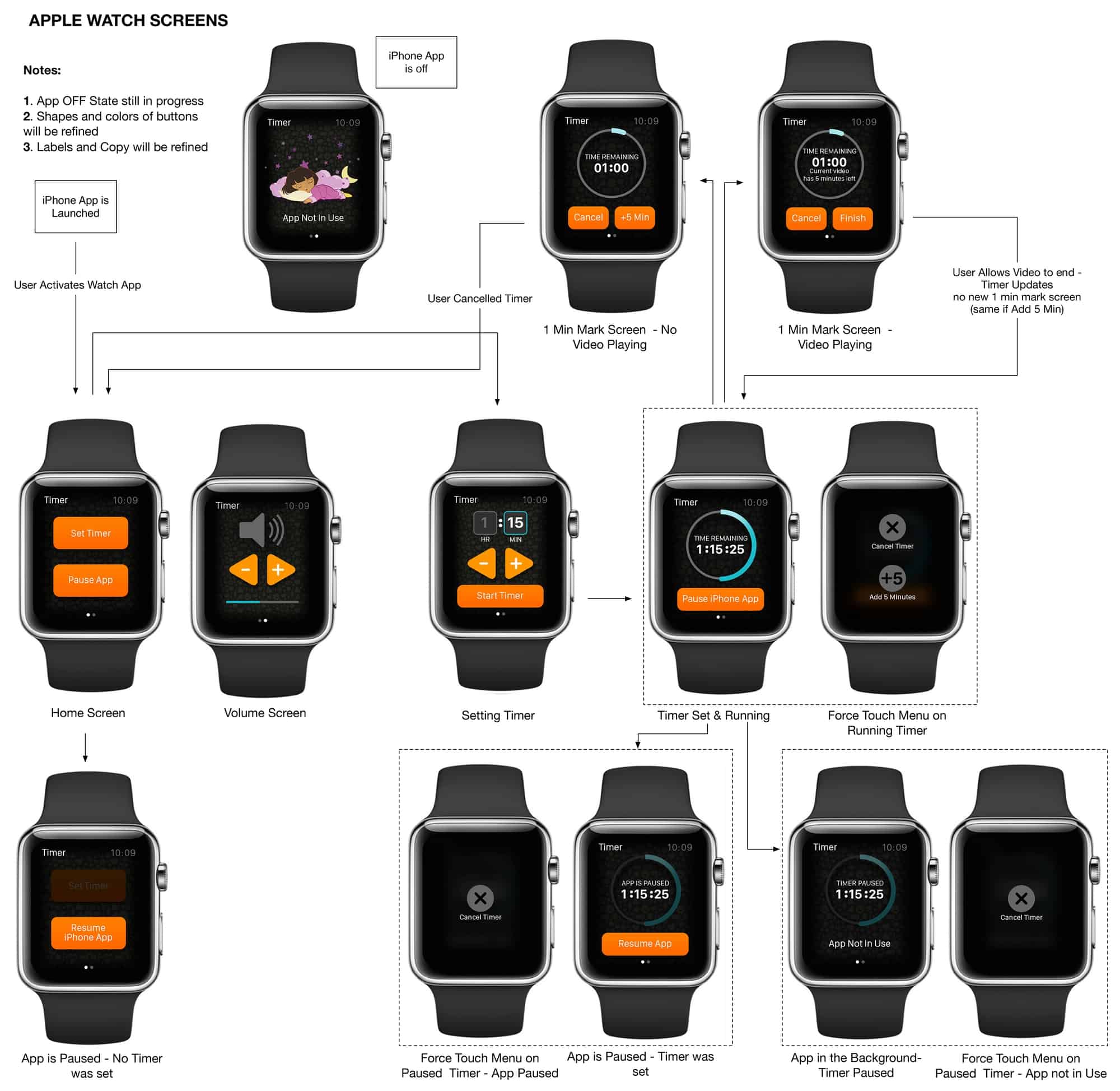 In addition to the design effort, I created an Apple Watch wearable experience for parents that can control turning the Nick Jr. app off and on, using a timer.